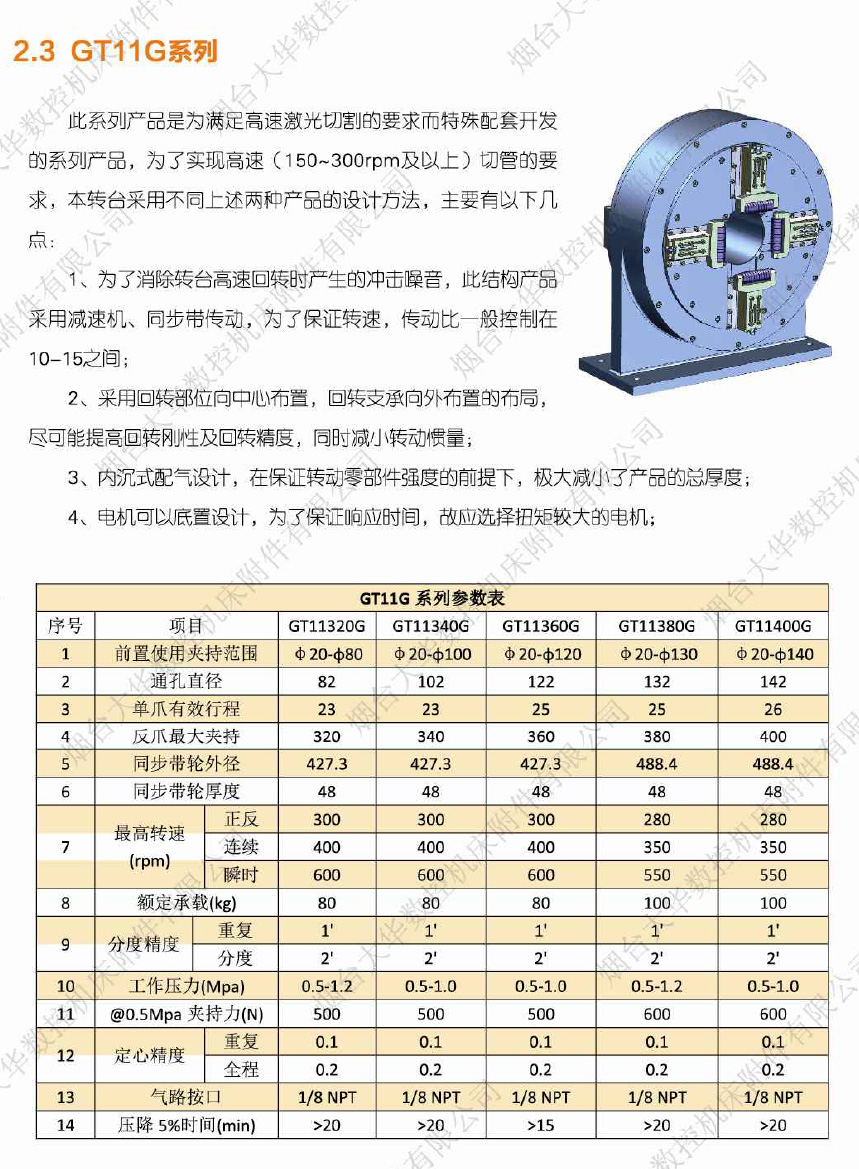 此產品為后置激光管切割轉臺,通配160、220及320型前置大通孔轉臺,此轉臺除具備GT11部分優點以外,還具有以下特點: